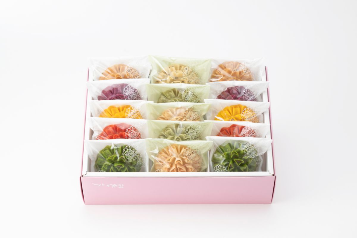 紫いも草ピューレ(国内製造)、米粉(米(三重県伊賀市産))、小麦粉(小麦(三重県産))、馬鈴薯でん粉、砂糖、ココナッツミルク、牛乳、卵、食塩、食用大豆油、食用なたね油/酸化防止剤(V.E)、(一部に小麦・乳成分・卵・大豆を含む)